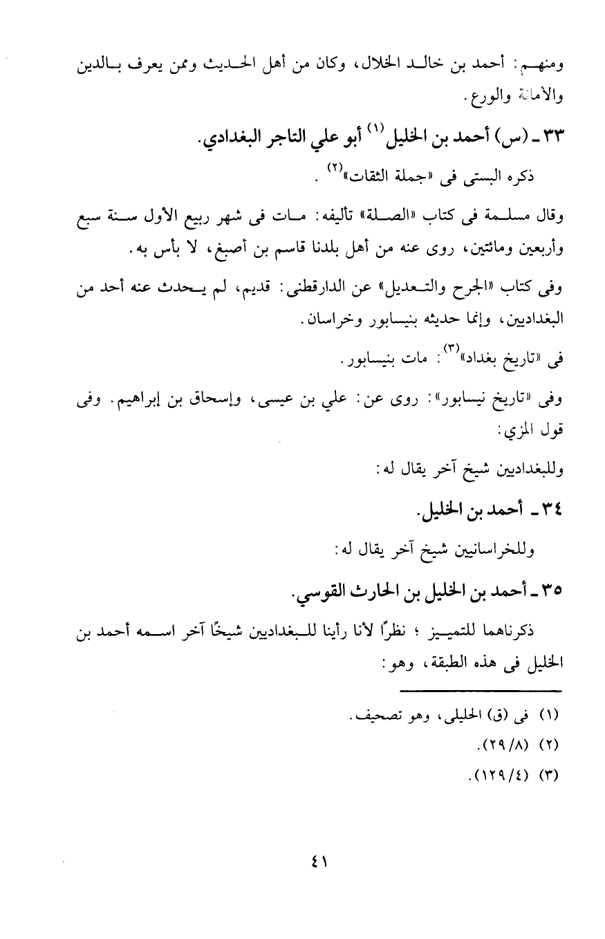 ذكرناهما للتمييز، نظرا لأنا رأينا للبغداديين شيخا آخر اسمه أحمد بن الخليل في هذه الطبقة، وهو: