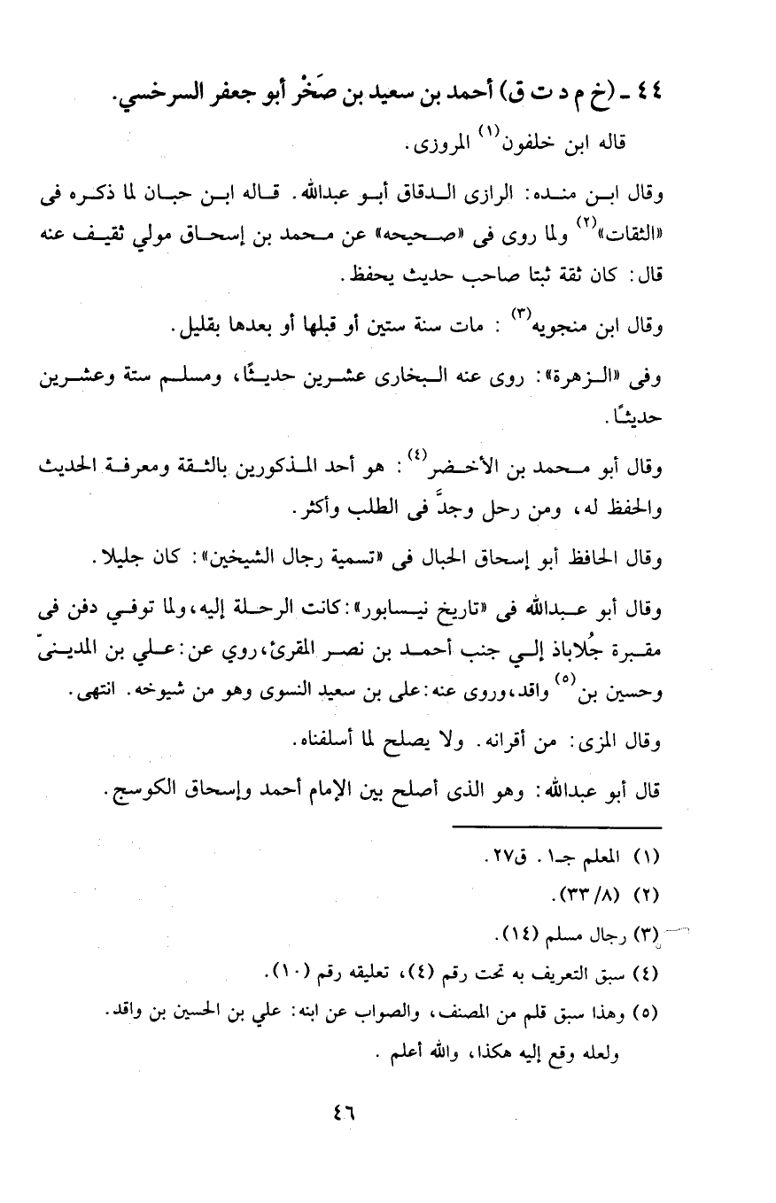 44 - (خ م د ت ق) أحمد بن سعيد بن صخر أبو جعفر السرخسي.