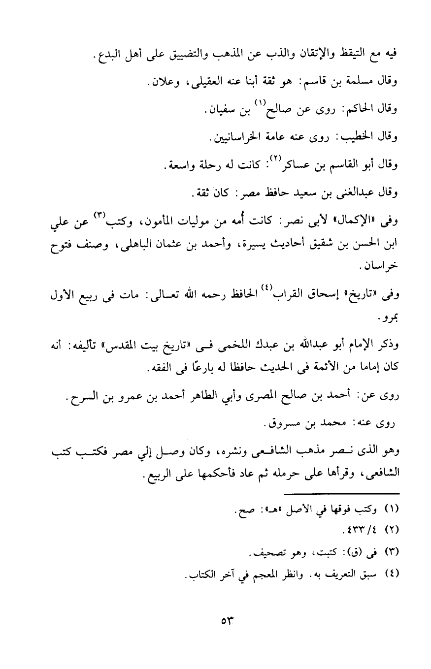 وذكر الإمام أبو عبد الله بن عبدك اللخمي في " تاريخ بيت المقدس " تأليفه: أنه كان إماما من الأئمة في الحديث حافظا له بارعا في الفقه.