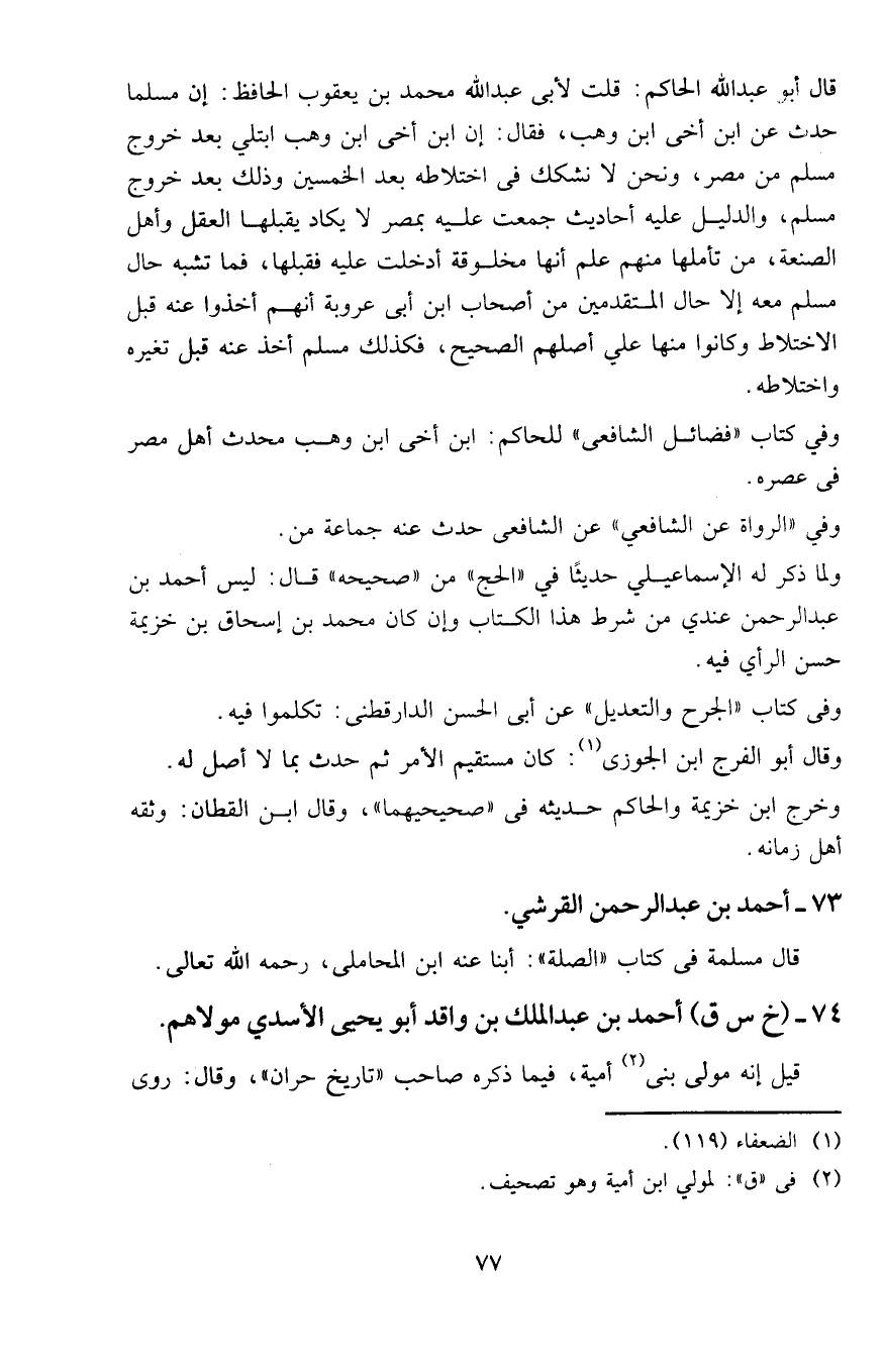 قال أبو عبد الله الحاكم: قلت لأبى عبد الله محمد بن يعقوب الحافظ: إن مسلما حدث عن ابن أخي ابن وهب، فقال: إن ابن أخي ابن وهب ابتلي بعد خروج مسلم من مصر، ونحن لا نشكك في اختلاطه بعد الخمسين وذلك بعد خروج مسلم، والدليل عليه أحاديث جمعت عليه بمصر لا يكاد يقبلها العقل وأهل الصنعة، من تأملها منهم علم أنها مخلوقة أدخلت عليه فقبلها، فما تشبه حال مسلم معه إلا حال المتقدمين من أصحاب ابن أبي عروبة أنهم أخذوا عنه قبل الاختلاط وكانوا منها على أصلهم الصحيح، فكذلك مسلم أخذ عنه قبل تغيره واختلاطه.