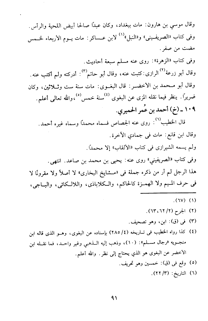 وقال أبو محمد بن الأخضر: قال البغوي: مات سنة ست وثلاثين، وكان ضريرا. ينظر فيما نقله المزي عن البغوي سنة خمس، والله تعالى أعلم.