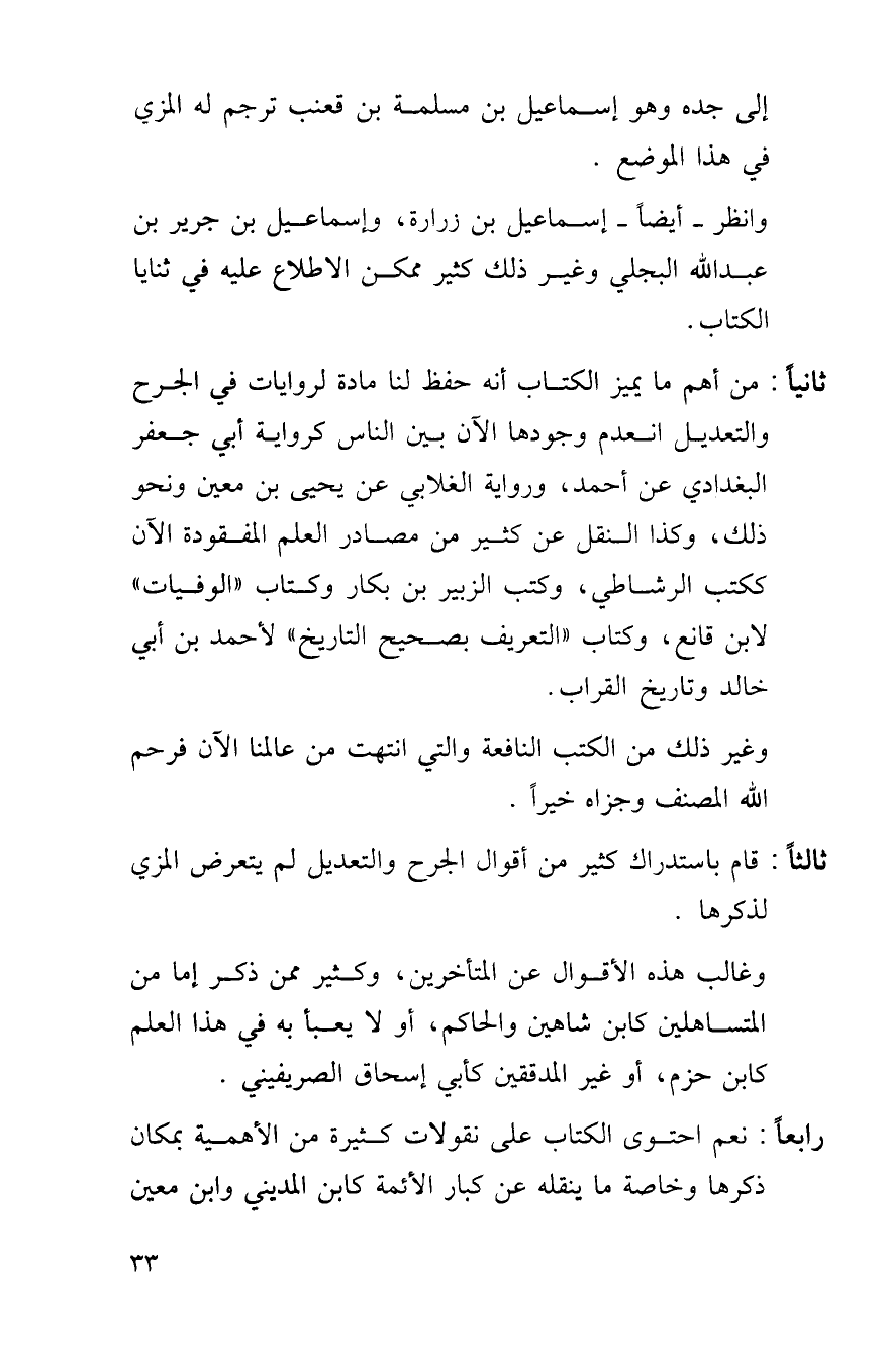 ثالثا: قام باستدراك كثير من أقوال الجرح والتعديل لم يتعرض المزي لذكرها.