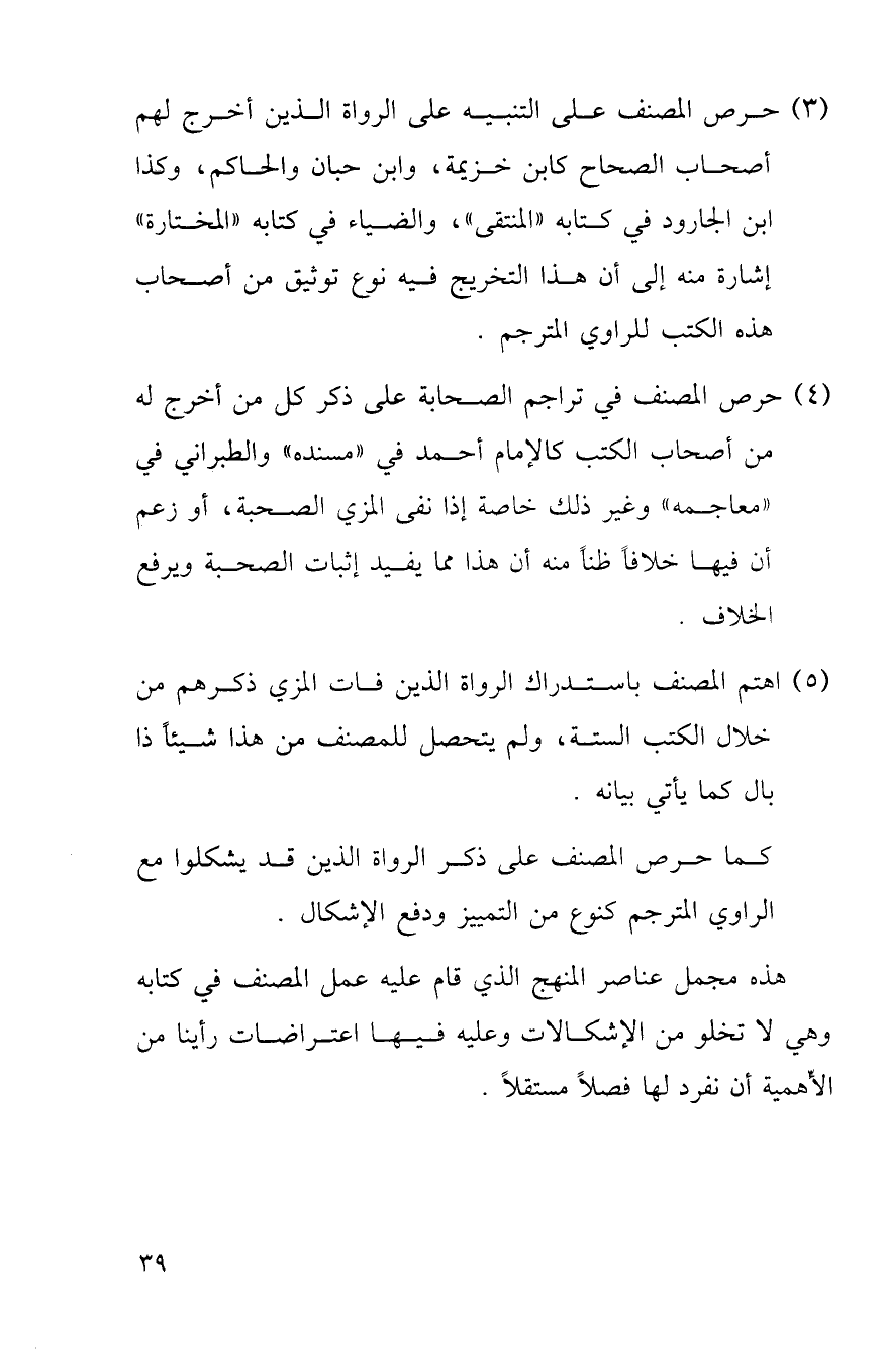 (5) اهتم المصنف باستدراك الرواة الذين فات المزي ذكرهم من خلال الكتب الستة، ولم يتحصل للمصنف من هذا شيئا ذا بال كما يأتي بيانه.