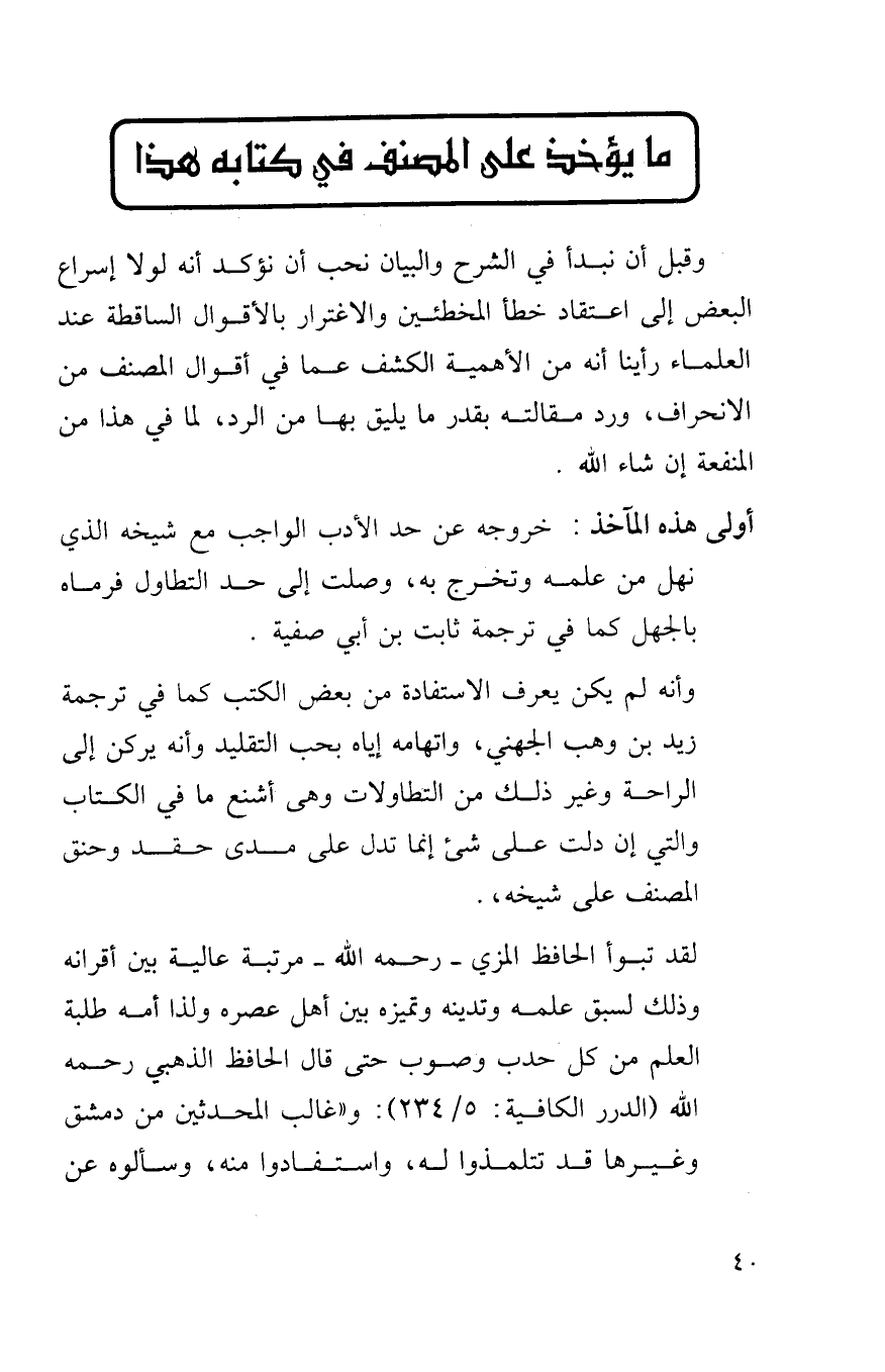 وقبل أن نبدأ في الشرح والبيان نحب أن نؤكد أنه لولا إسراع البعض إلى اعتقاد خطأ المخطئين والاغترار بالأقوال الساقطة عند العلماء رأينا أنه من الأهمية الكشف عما في أقوال المصنف من الانحراف، ورد مقالته بقدر ما يليق بها من الرد، لما في هذا من المنفعة إن شاء الله.