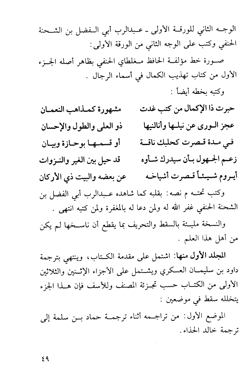 صورة خط مؤلفة الحافظ مغلطاي الحنفي بظاهر أصله الجزء الأول من كتاب تهذيب الكمال في أسماء الرجال.