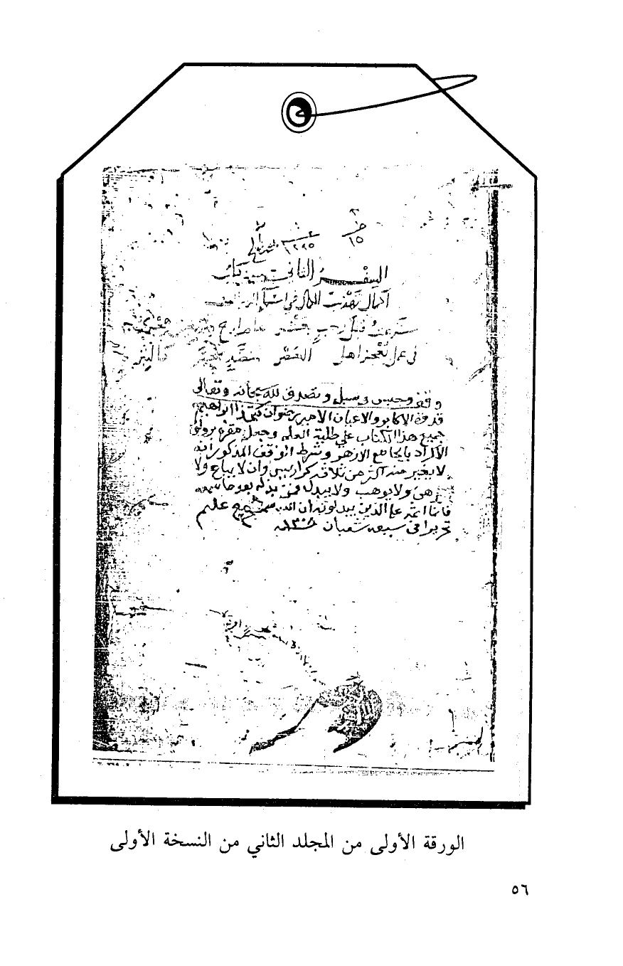الورقة الأولى من المجلد الثاني من النسخة الأولى