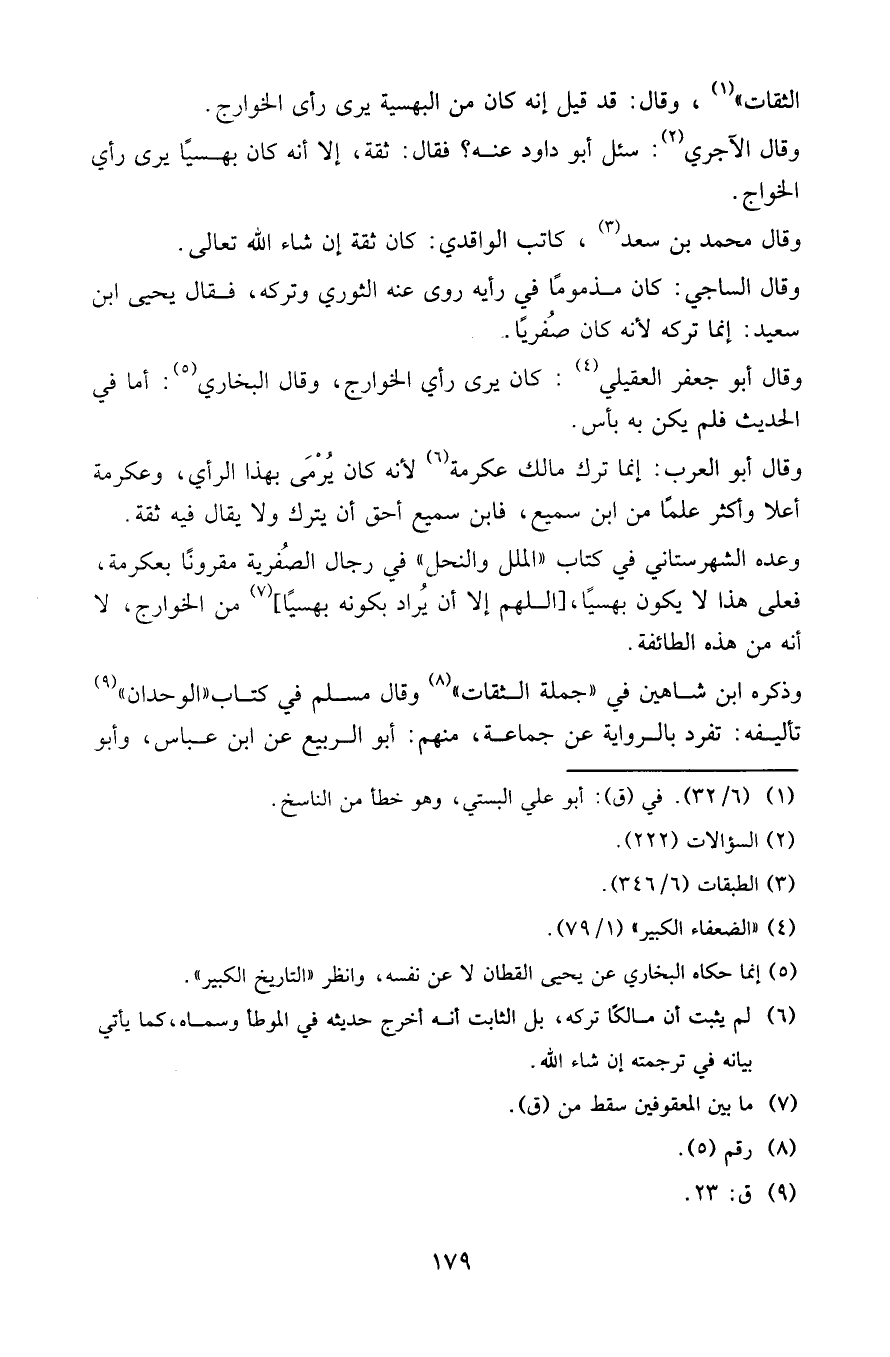 الثقات»، وقال: قد قيل إنه كان من البهسية يرى رأي الخوارج.