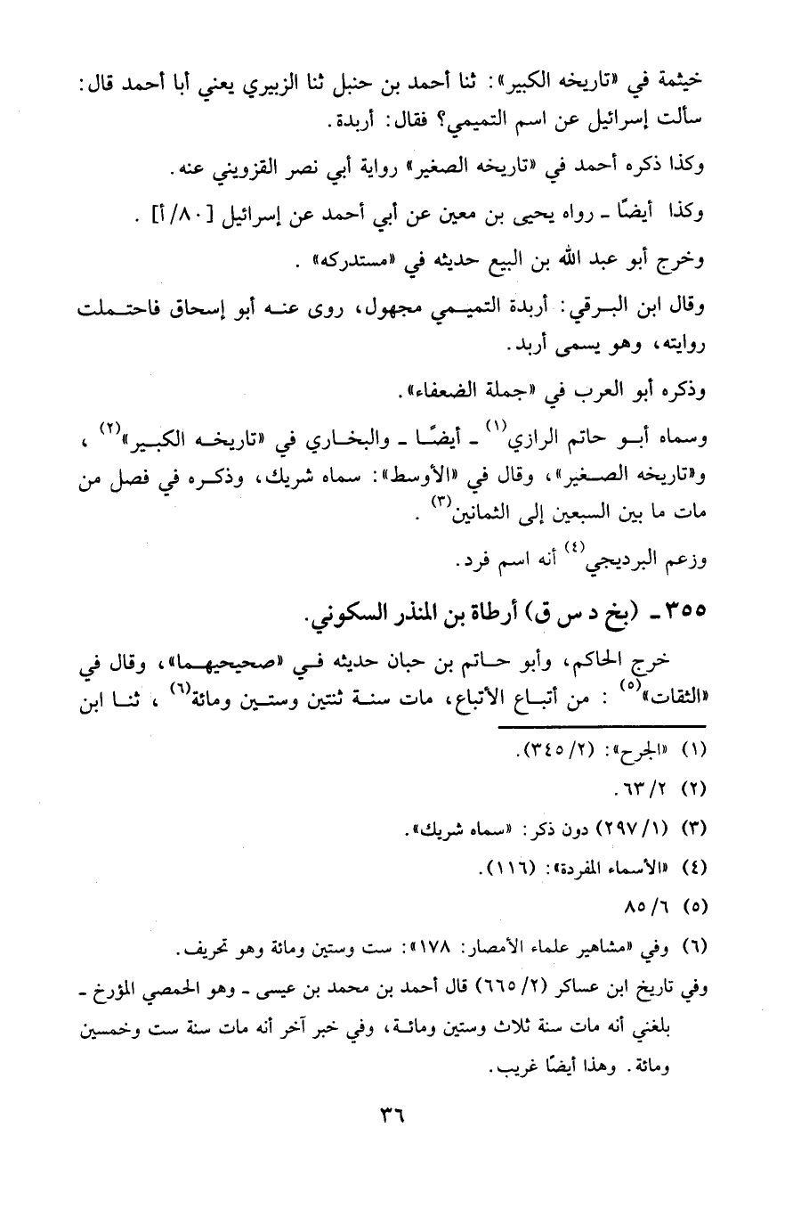 خيثمة في «تاريخه الكبير»: ثنا أحمد بن حنبل ثنا الزبيري يعني أبا أحمد قال: سألت إسرائيل عن اسم التميمي؟ فقال: أربدة.
