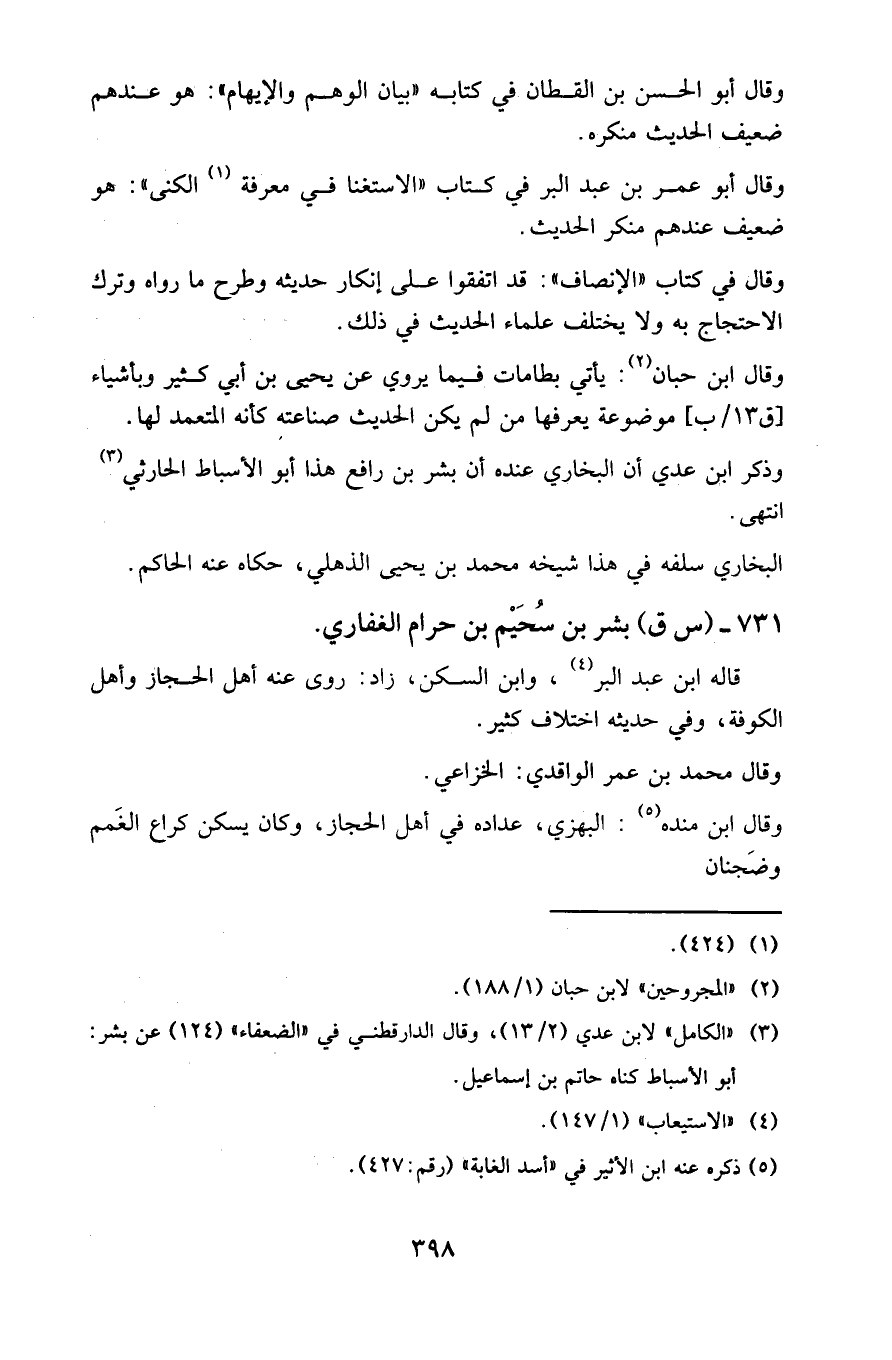 731 - (س ق) بشر بن سُحَيْم بن حرام الغفاري.