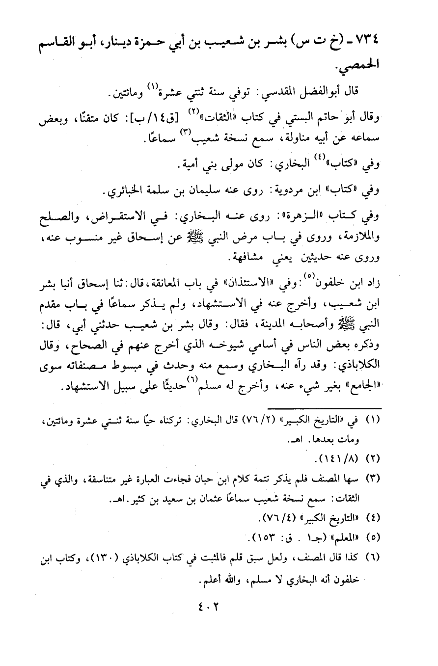 734 - (خ ت س) بشر بن شعيب بن أبي حمزة دينار، أبو القاسم الحمصي.