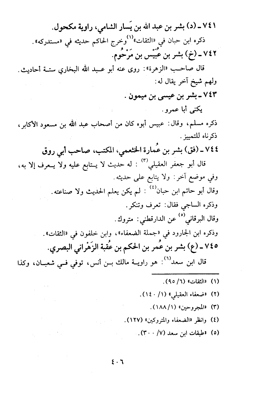 745 - (ع) بشر بن عمر بن الحكم بن عقبة الزهراني البصري.
