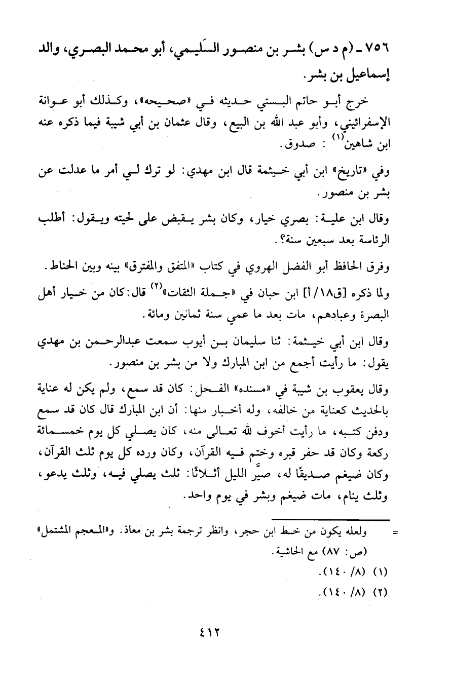 756 - (م د س) بشر بن منصور السليمي، أبو محمد البصري، والد إسماعيل بن بشر.