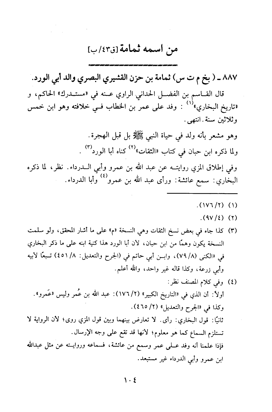 887 - (بخ م ت س) ثمامة بن حزن القشيري البصري والد أبي الورد.