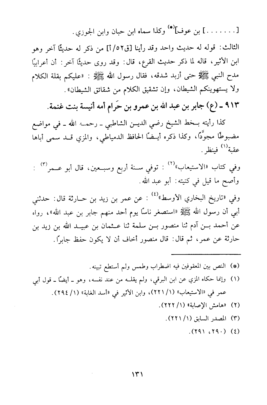 913 - (ع) جابر بن عبد الله بن عمرو بن حرام أمه أنيسة بنت غنمة.