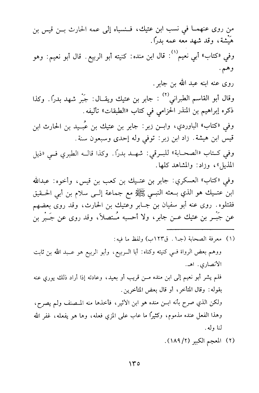 وفي «كتاب» الباوردي، وابن زبر: جابر بن عتيك بن عبيد بن الحارث ابن قيس ابن هيشة. زاد ابن زبر: توفي وله إحدى وسبعون سنة.