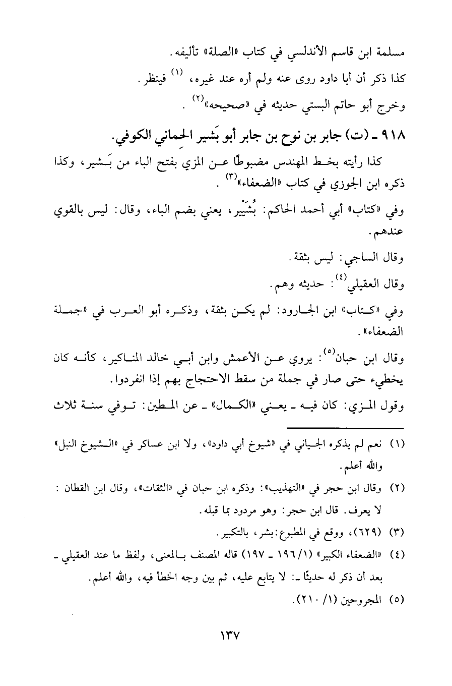 918 - (ت) جابر بن نوح بن جابر أبو بشير الحماني الكوفي.