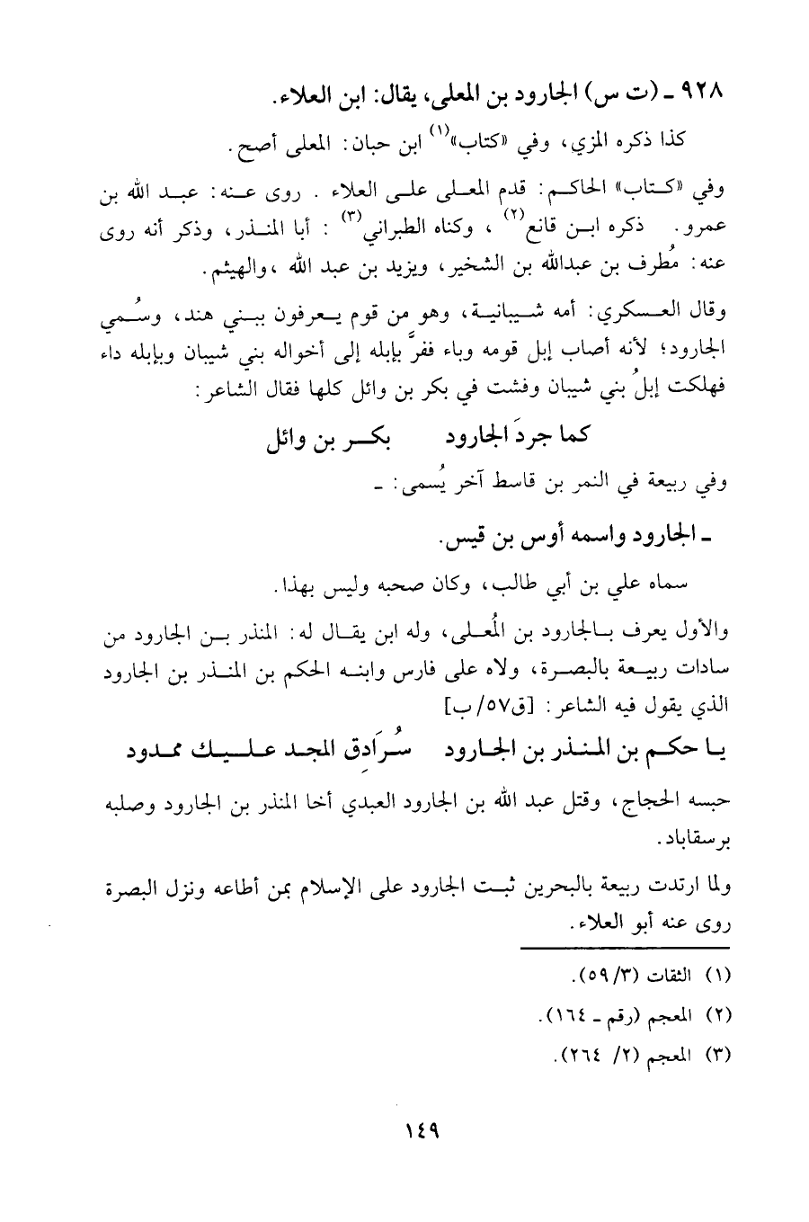 928 - (ت س) الجارود بن المعلى، يقال: ابن العلاء.