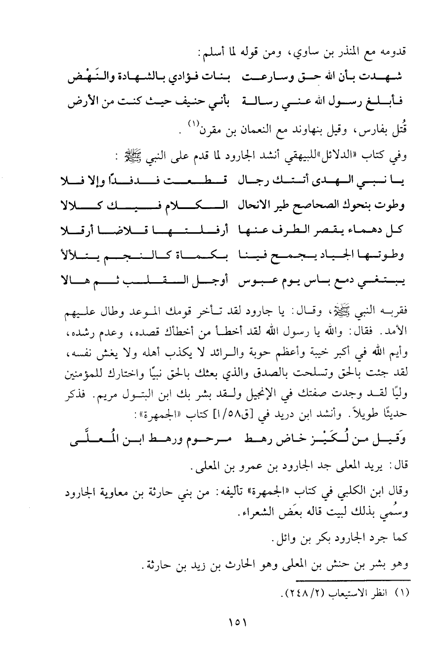 وفي كتاب «الدلائل» للبيهقي أنشد الجارود لما قدم على النبي صلى الله عليه وسلم: