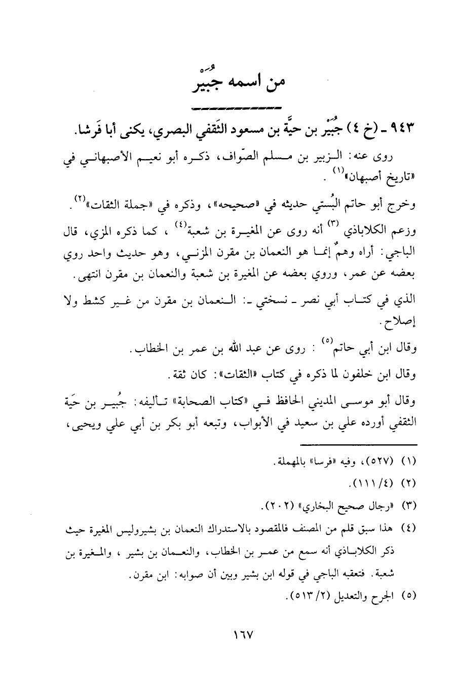 943 - (خ 4) جبير بن حية بن مسعود الثقفي البصري، يكنى أبا فرشا.