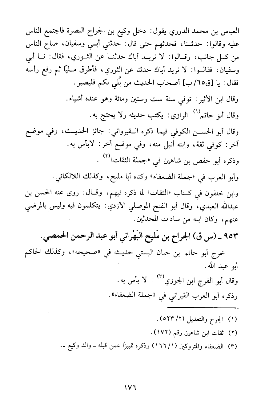953 - (س ق) الجراح بن مليح البهراني أبو عبد الرحمن الحمصي.