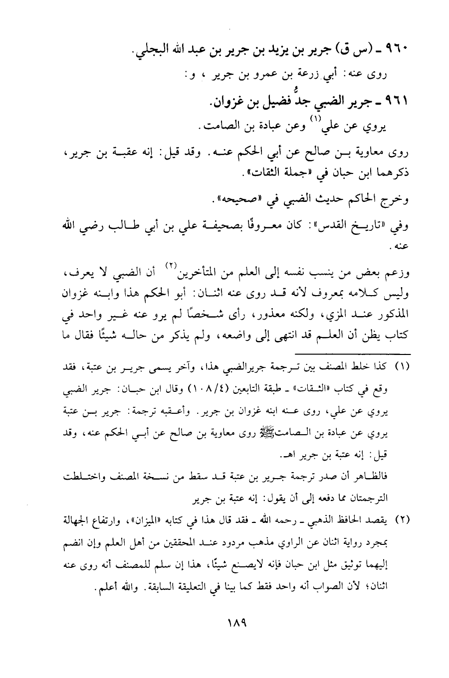 960 - (س ق) جرير بن يزيد بن جرير بن عبد الله البجلي.