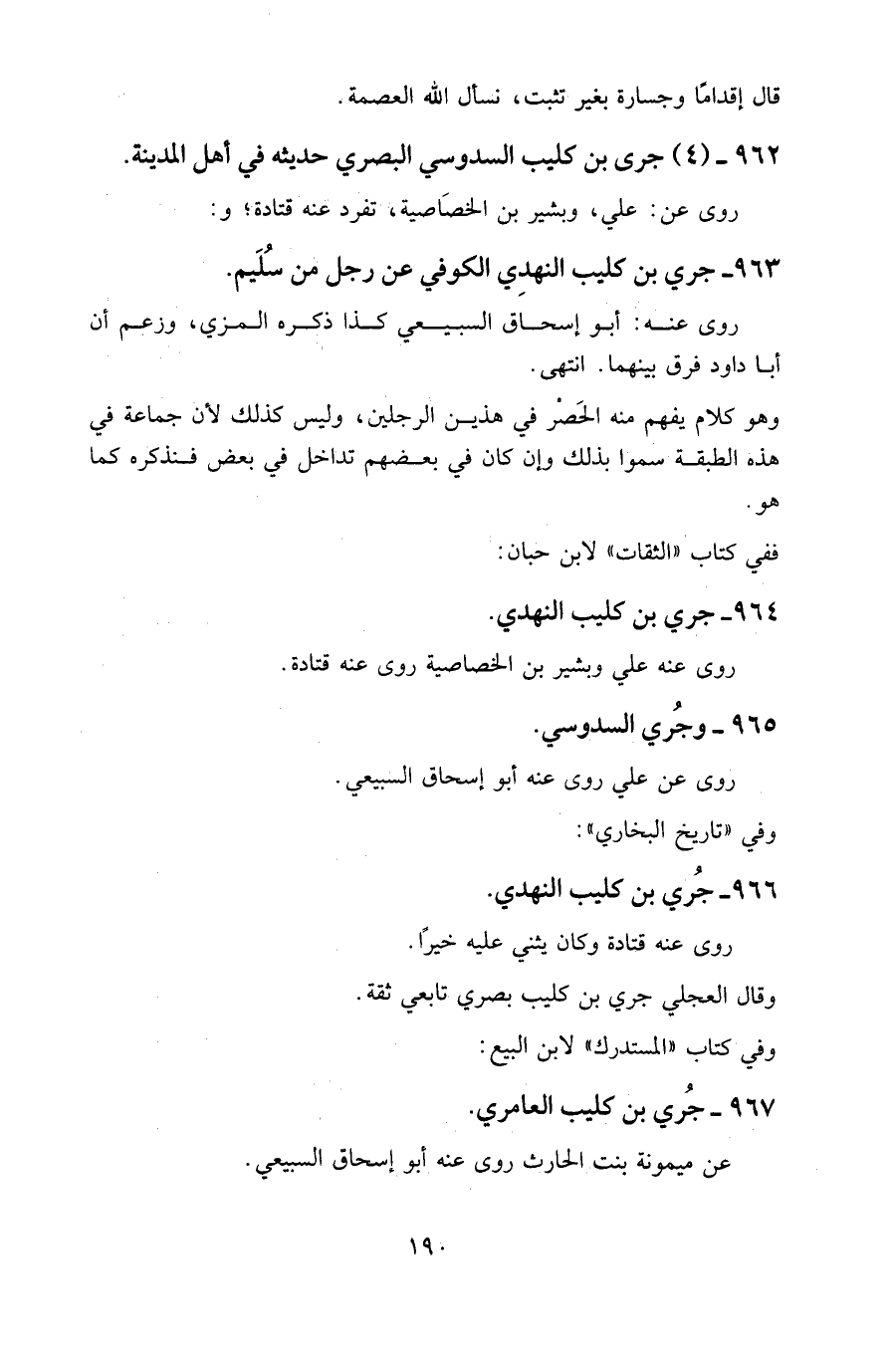 962 - (4) جرى بن كليب السدوسي البصري حديثه في أهل المدينة.