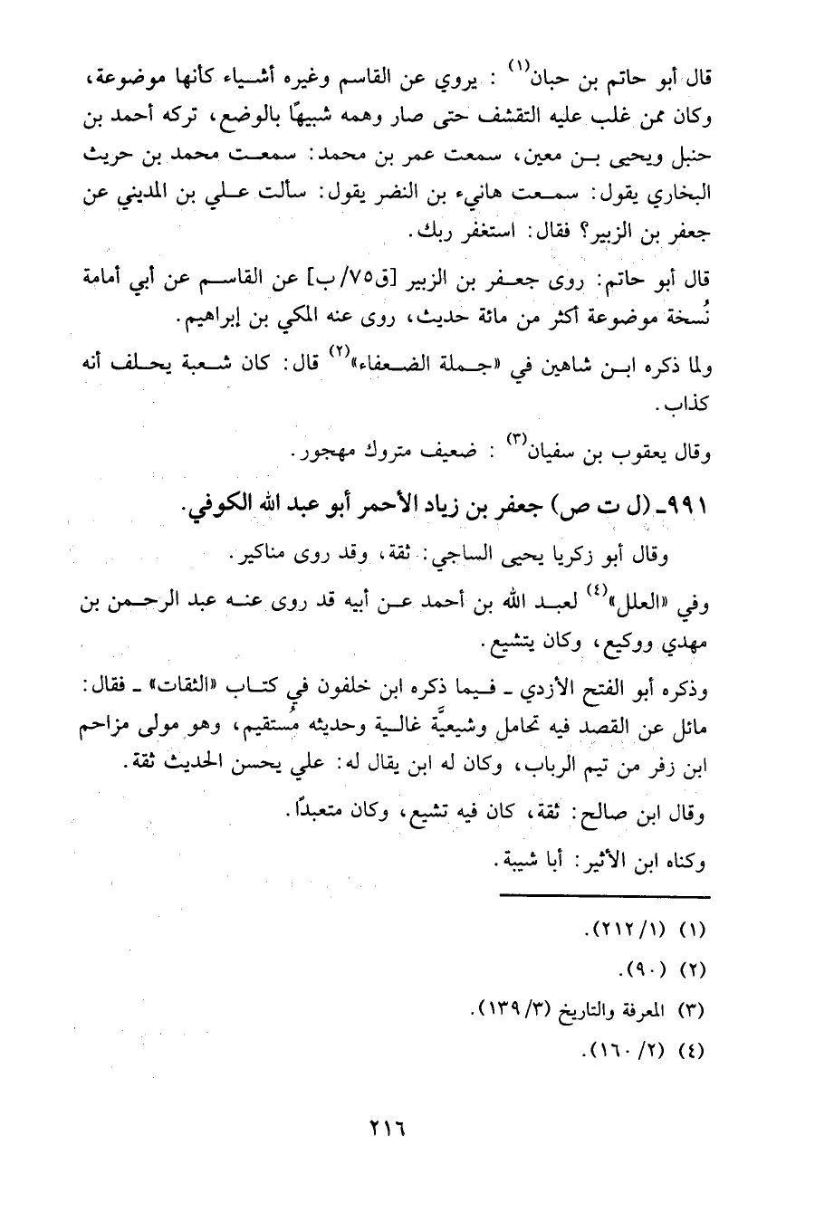 991 - (ل ت ص) جعفر بن زياد الأحمر أبو عبد الله الكوفي.