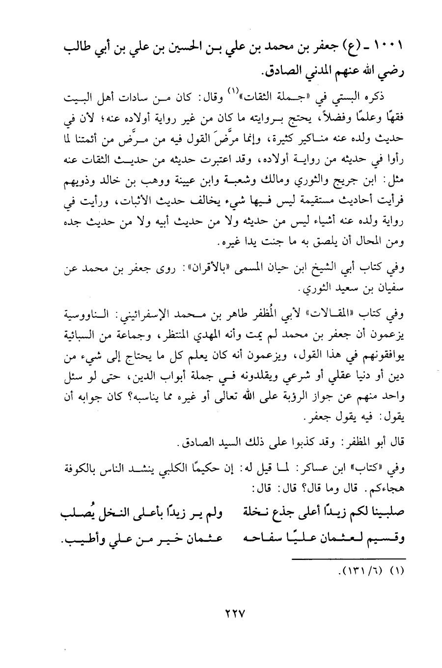 1001 - (ع) جعفر بن محمد بن علي بن الحسين بن علي بن أبي طالب رضي الله عنهم المدني الصادق.