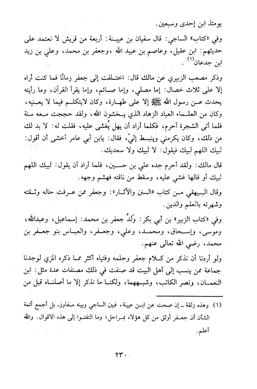ولو أردنا أن نذكر من كلام جعفر وحلمه وفتياه أكثر مما ذكره المزي لوجدنا جماعة ممن ينسب إلى أهل البيت قد صنفت في ذلك مصنفات عدة مثل: ابن النعمان، ونصر الكاتب، وشبههما، ولكنا ما نذكر إلا ما أصلناه قبل من