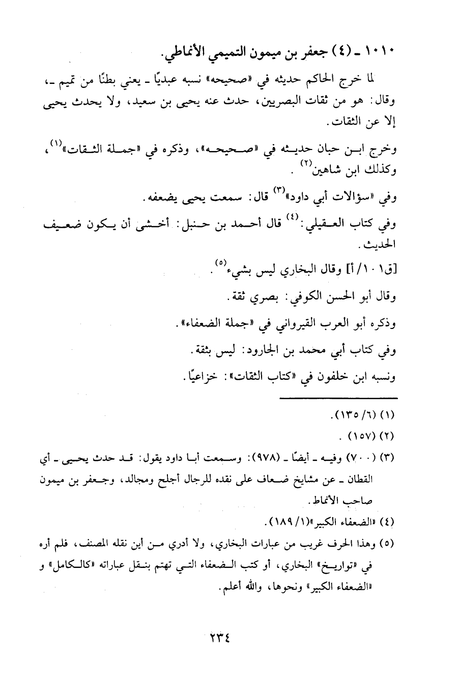 1010 - (4) جعفر بن ميمون التميمي الأنماطي.