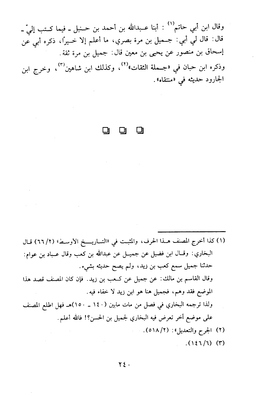 وقال ابن أبي حاتم: أبنا عبد الله بن أحمد بن حنبل - فيما كتب إلي - قال: قال لي أبي: جميل بن مرة بصري، ما أعلم إلا خيرا، ذكره أبي عن إسحاق بن منصور عن يحيى بن معين قال: جميل بن مرة ثقة.