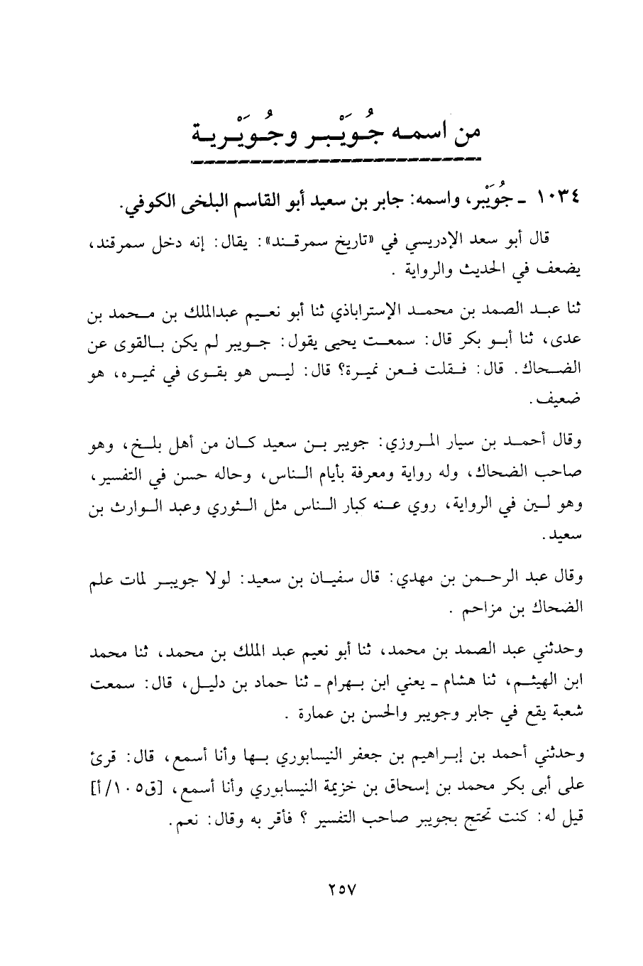 1034 - جويبر، واسمه: جابر بن سعيد أبو القاسم البلخي الكوفي.