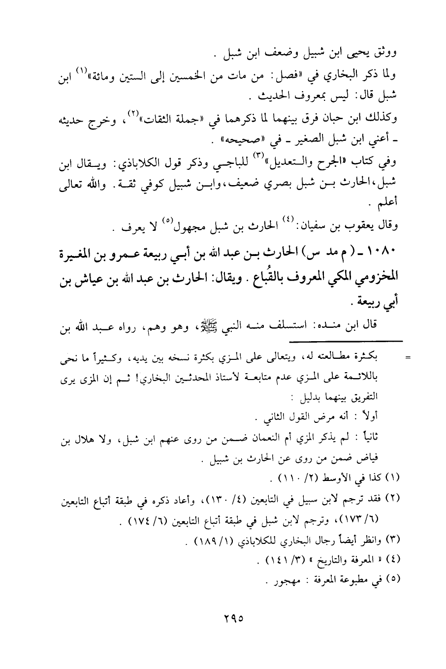 وفي كتاب «الجرح والتعديل» للباجي وذكر قول الكلاباذي: ويقال: ابن شبل، الحارث بن شبل بصري ضعيف، وابن شبيل كوفي ثقة. والله تعالى أعلم.