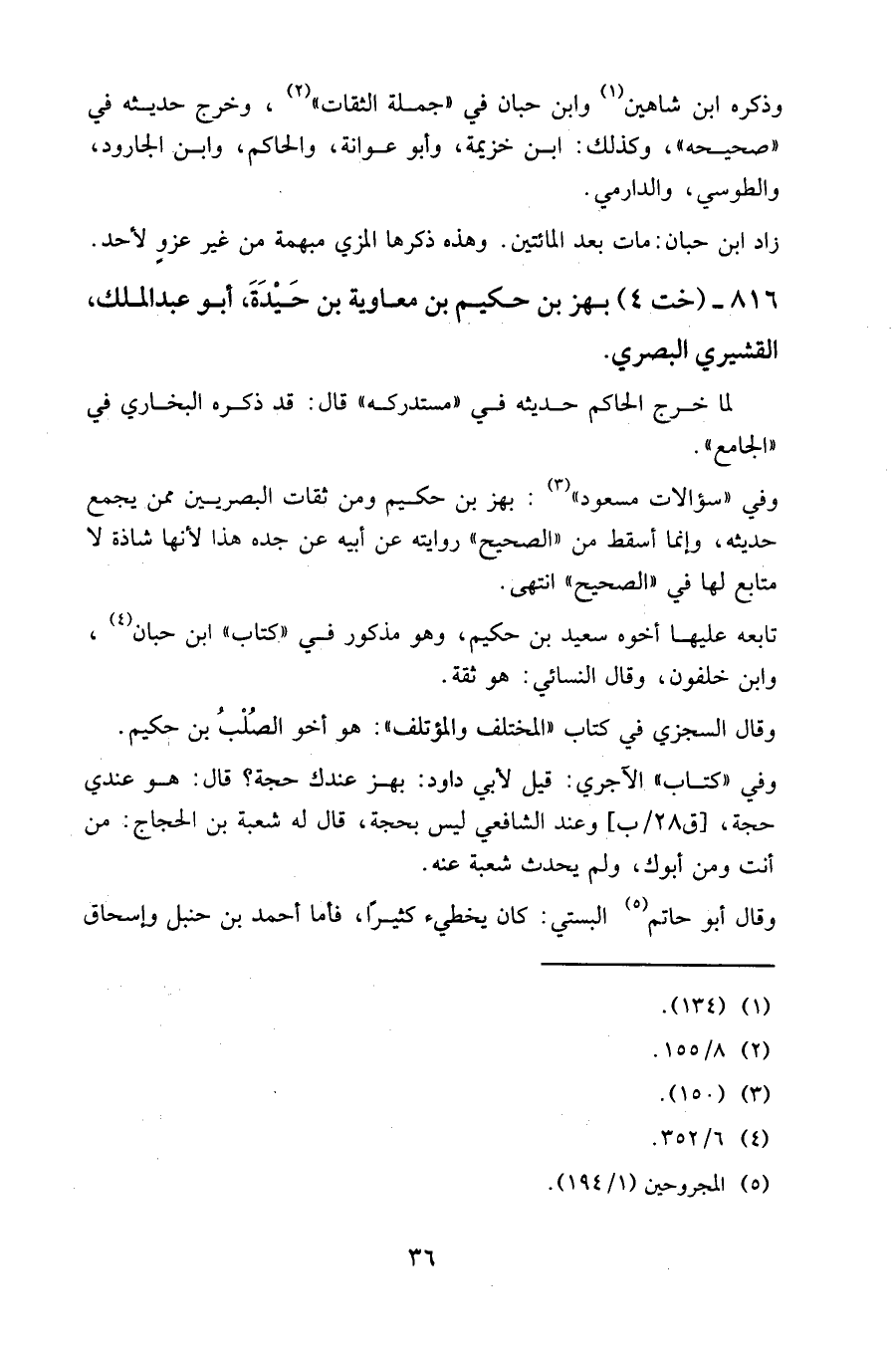 816 - (خت 4) بهز بن حكيم بن معاوية بن حيدة، أبو عبد الملك، القشيري البصري.