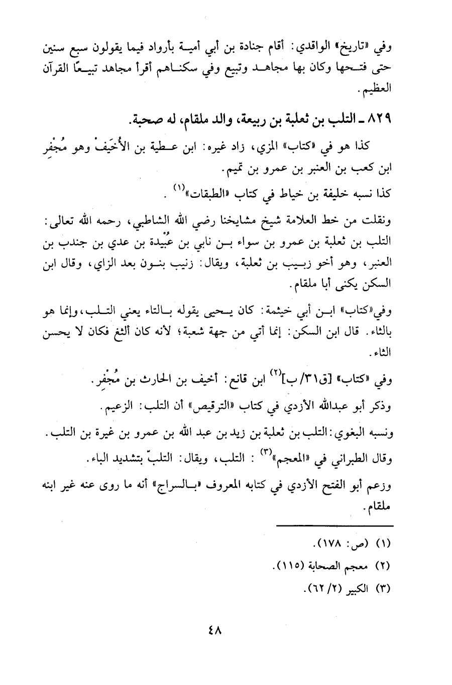 829 - التلب بن ثعلبة بن ربيعة، والد ملقام، له صحبة.