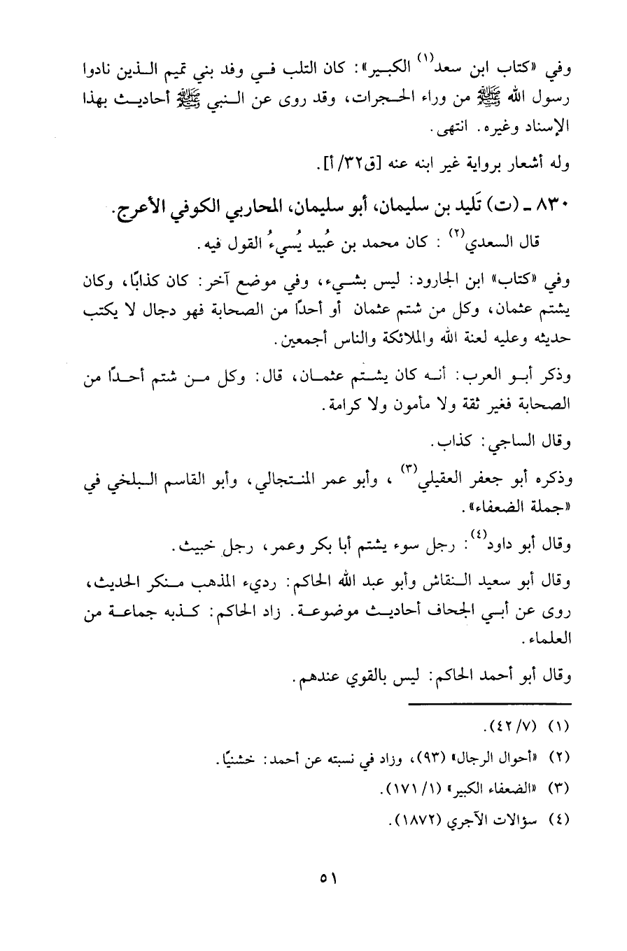 830 - (ت) تليد بن سليمان، أبو سليمان، المحاربي الكوفي الأعرج.