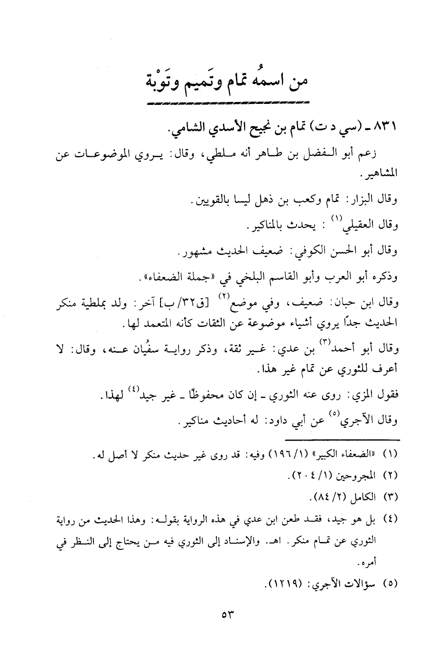 831 - (سي د ت) تمام بن نجيح الأسدي الشامي.