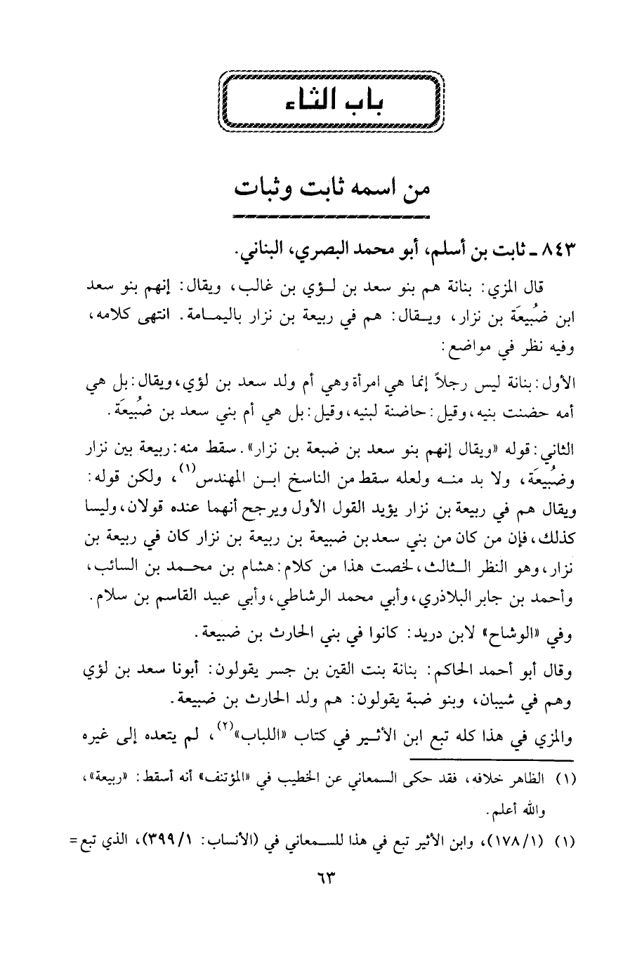والمزي في هذا كله تبع ابن الأثير في كتاب «اللباب»، لم يتعده إلى غيره،