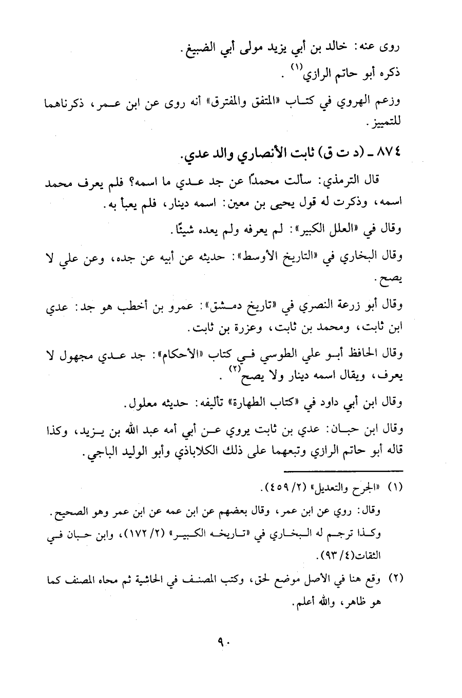 874 - (د ت ق) ثابت الأنصاري والد عدي.