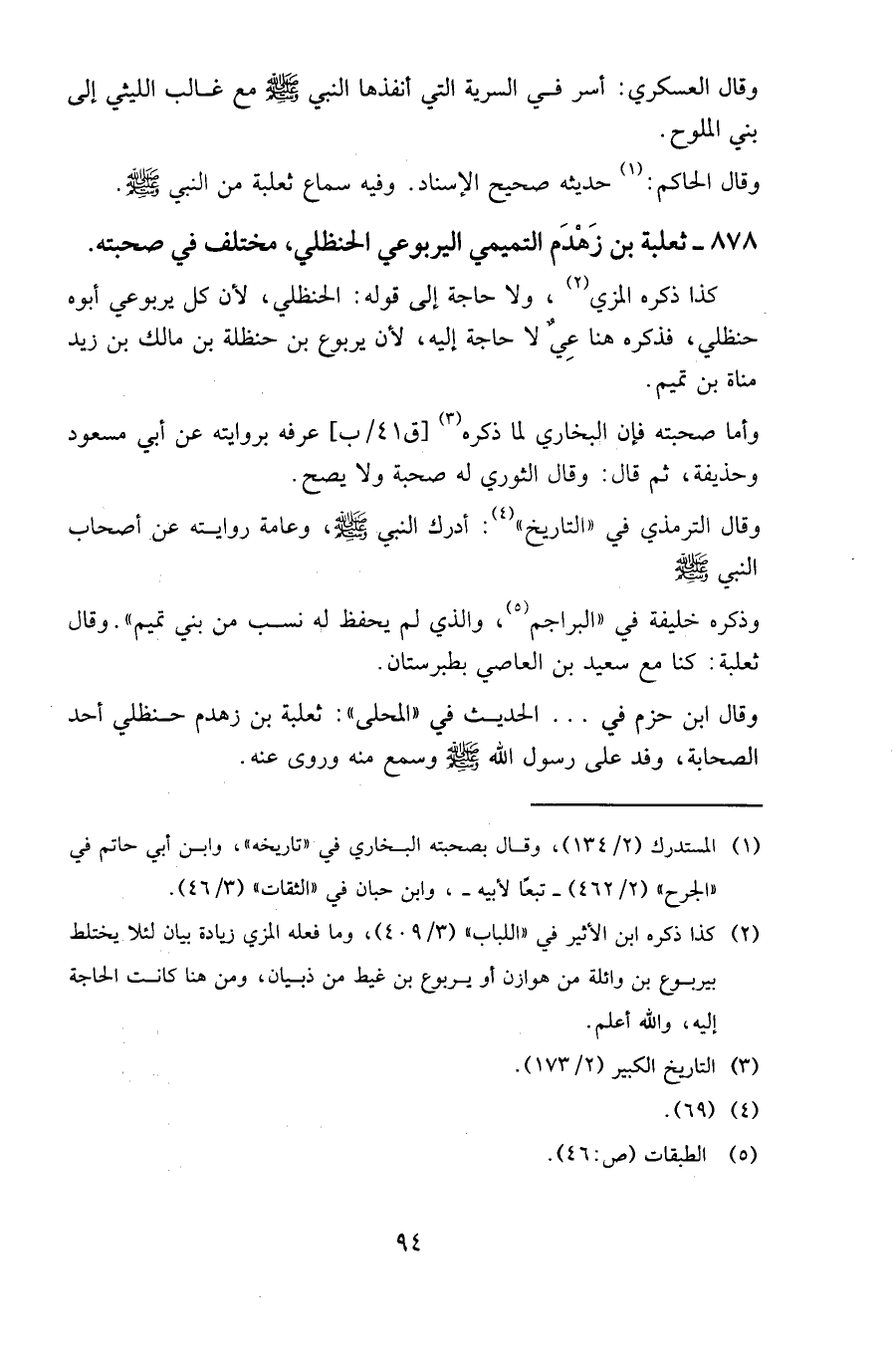 878 - ثعلبة بن زهدم التميمي اليربوعي الحنظلي، مختلف في صحبته.