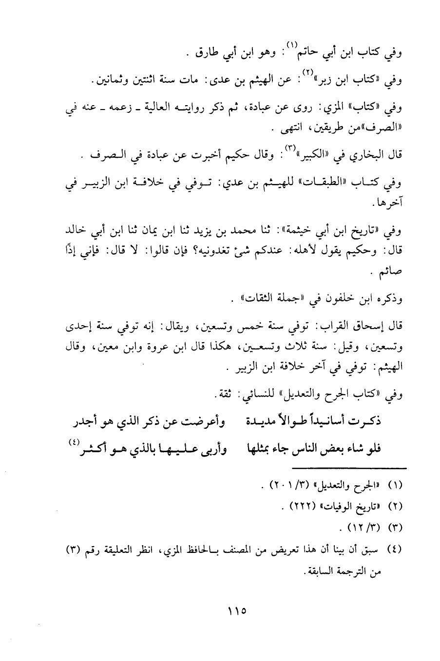قال البخاري في «الكبير»: وقال حكيم أخبرت عن عبادة في الصرف.