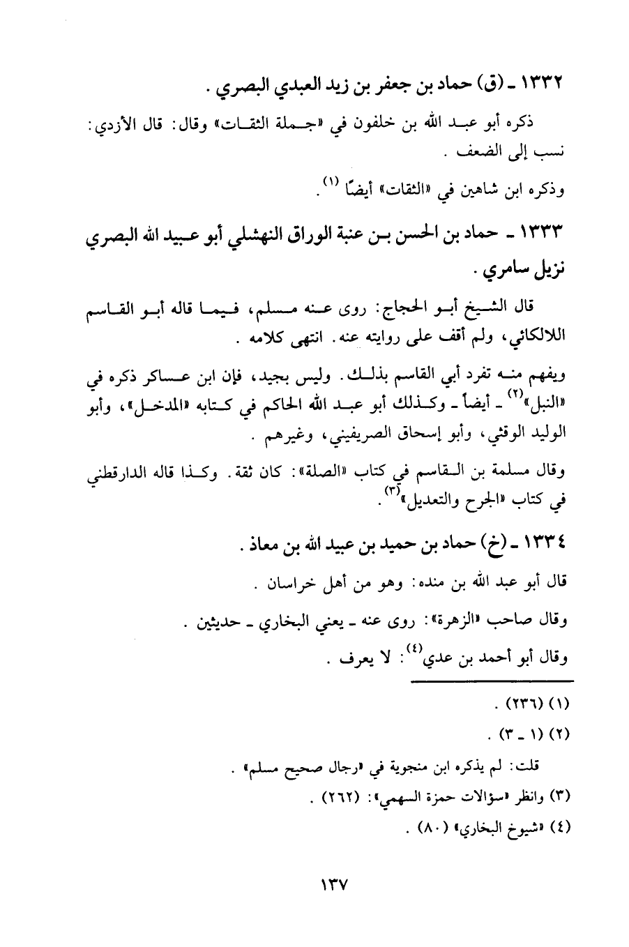 1333 - حماد بن الحسن بن عنبة الوراق النهشلي، أبو عبيد الله البصري نزيل سامري.