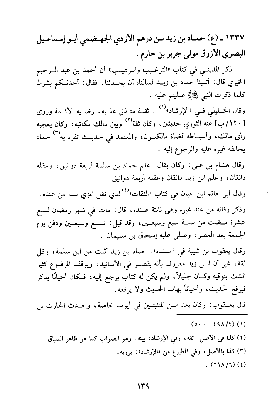 1337 - (ع) حماد بن زيد بن درهم الأزدي الجهضمي أبو إسماعيل البصري الأزرق مولى جرير بن حازم.