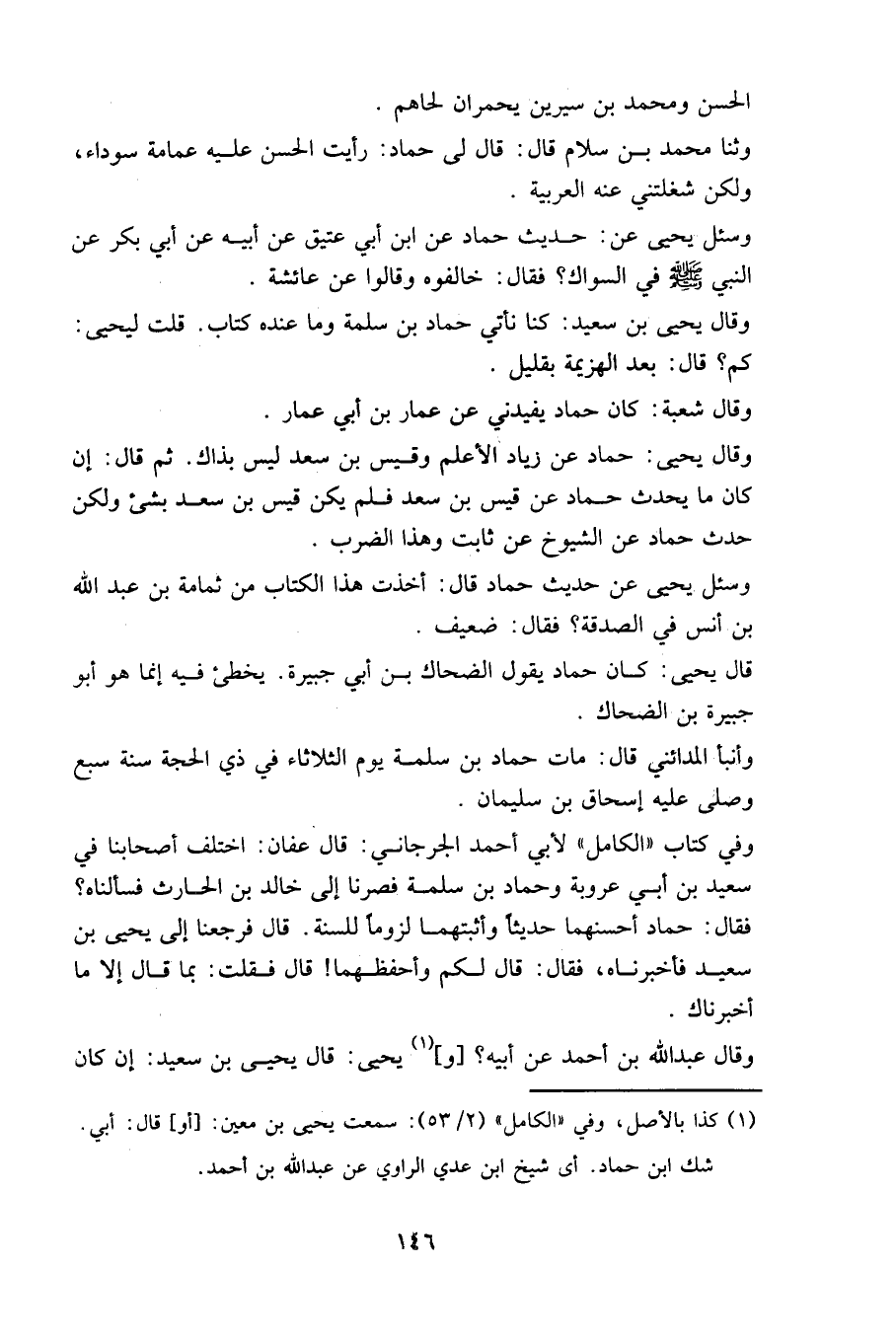 وقال يحيى بن سعيد: كنا نأتي حماد بن سلمة وما عنده كتاب. قلت ليحيى: كم؟ قال: بعد الهزيمة بقليل.