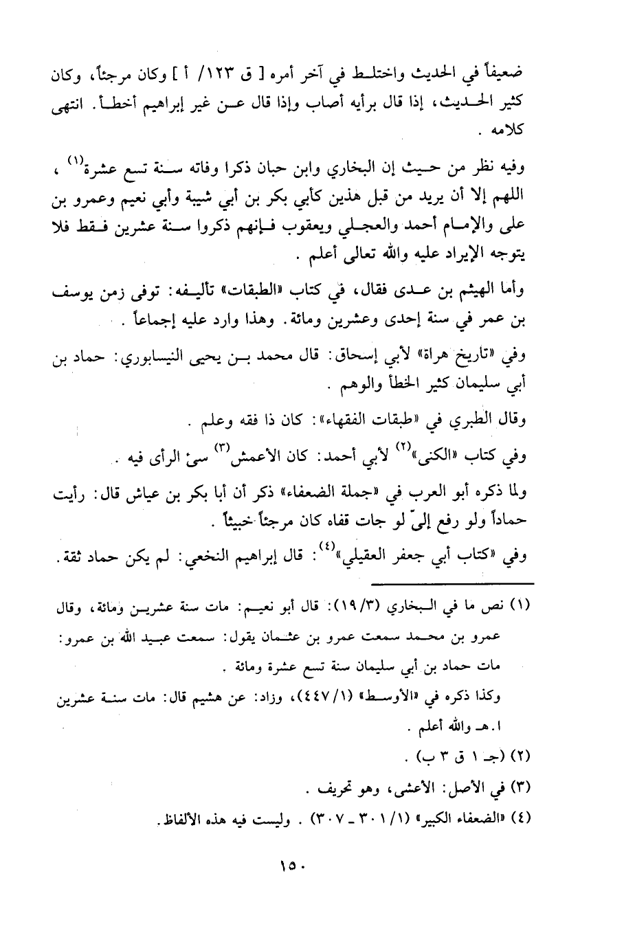 وفي «كتاب أبي جعفر العقيلي»: قال إبراهيم النخعي: لم يكن حماد ثقة.