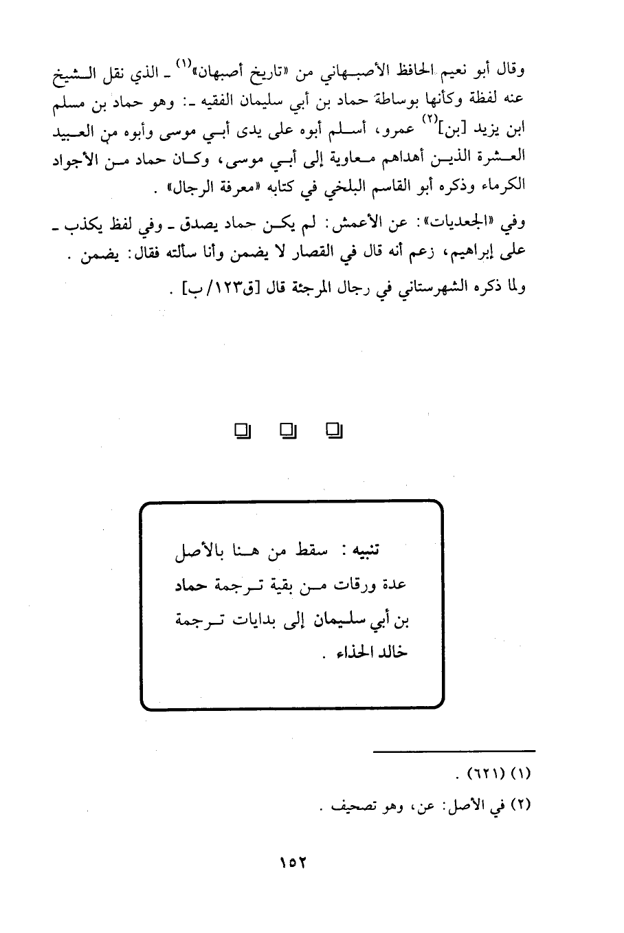 وقال أبو نعيم الحافظ الأصبهاني من «تاريخ أصبهان» - الذي نقل الشيخ عنه لفظة وكأنها بوساطة