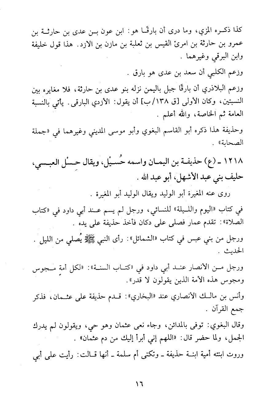 وحذيفة هذا ذكره أبو القاسم البغوي وأبو موسى المديني وغيرهما في «جملة الصحابة».
