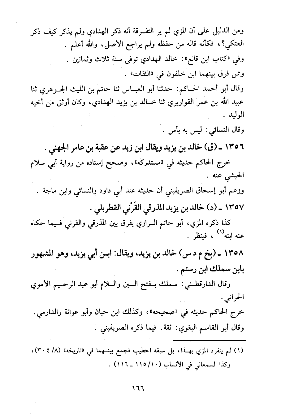ومن الدليل على أن المزي لم ير التفرقة أنه ذكر الهدادي ولم يذكر كيف ذكر العتكي؟، فكأنه قاله من حفظه ولم يراجع الأصل، والله أعلم.