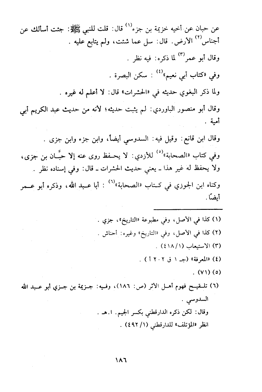 وقال ابن قانع: وقيل فيه: السدوسي أيضا، وابن جزء، وابن جزي.