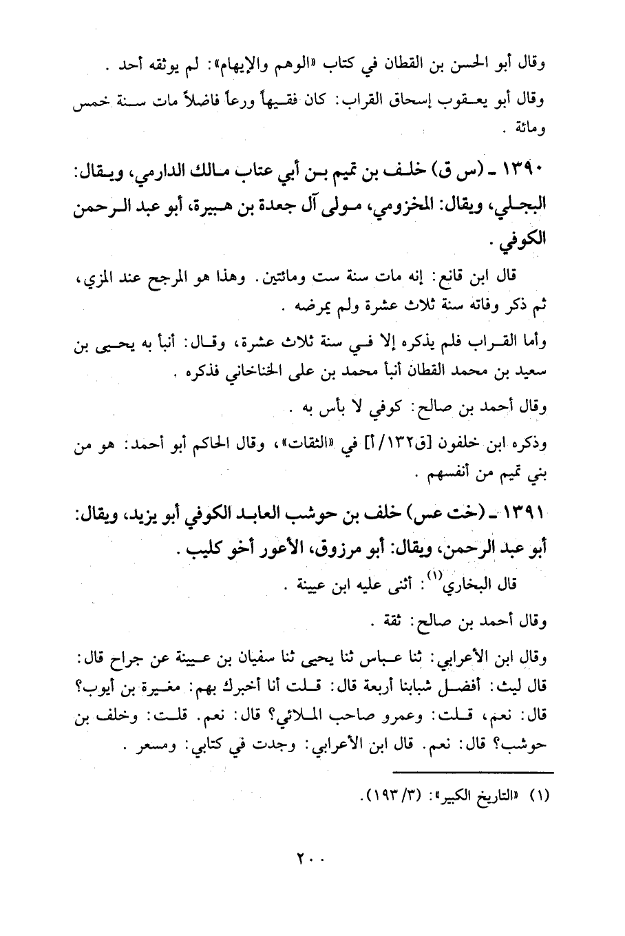 وذكره ابن خلفون في «الثقات»، وقال الحاكم أبو أحمد: هو من بني تميم من أنفسهم.